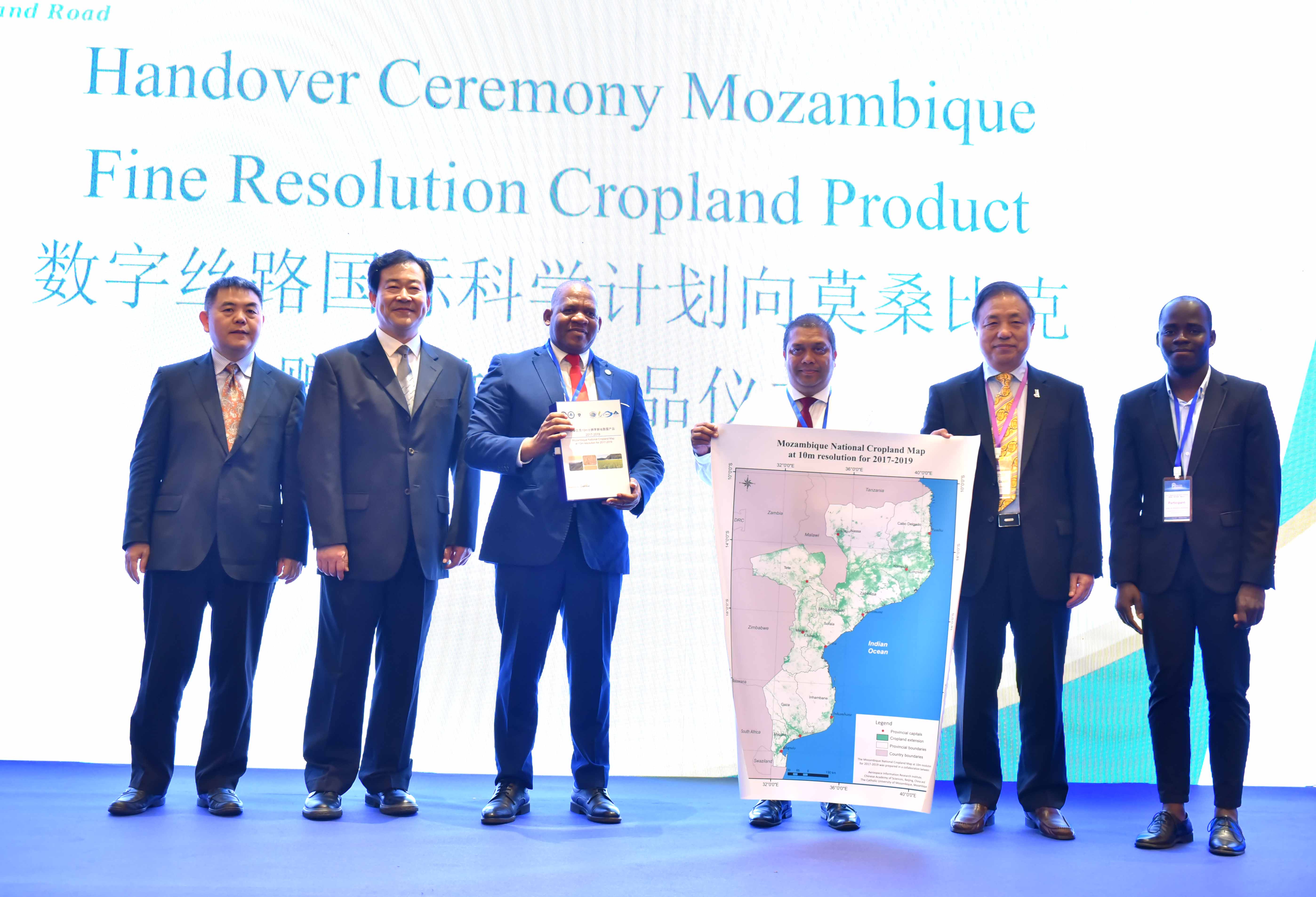 At the opening ceremony, the Cadastre Committee of the Republic of Armenia and DBAR signed an official cooperation agreement to join the DBAR. Artak Piloyan, head of the nation's Geodesy and Cartography Department at Cadastre Committee, said that Armenia is looking forward to strengthening its applied researches in the field of Big Earth Data for “Belt and Road” through the cooperation under the DBAR. He said that the Armenian side is willing to share its local observation data and enhance the level of land management and environmental monitoring through data sharing. Meanwhile, CASEarth handed over a dataset of a high-resolution cropland map to the Ministry of Agriculture and Food Security of Mozambique. It could be used to assist Mozambique in strengthening its capabilities of coping with extreme climatic events including flood, drought, and crop diseases and pest, and facilitate reasonable utilization of water resources with information support, ensuring food security in the country.