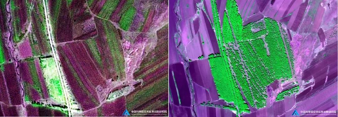 Tree-planting in Kubuqi desert. Dates: June, 2005 (SPOT-5) – June, 2019 (GF-1)