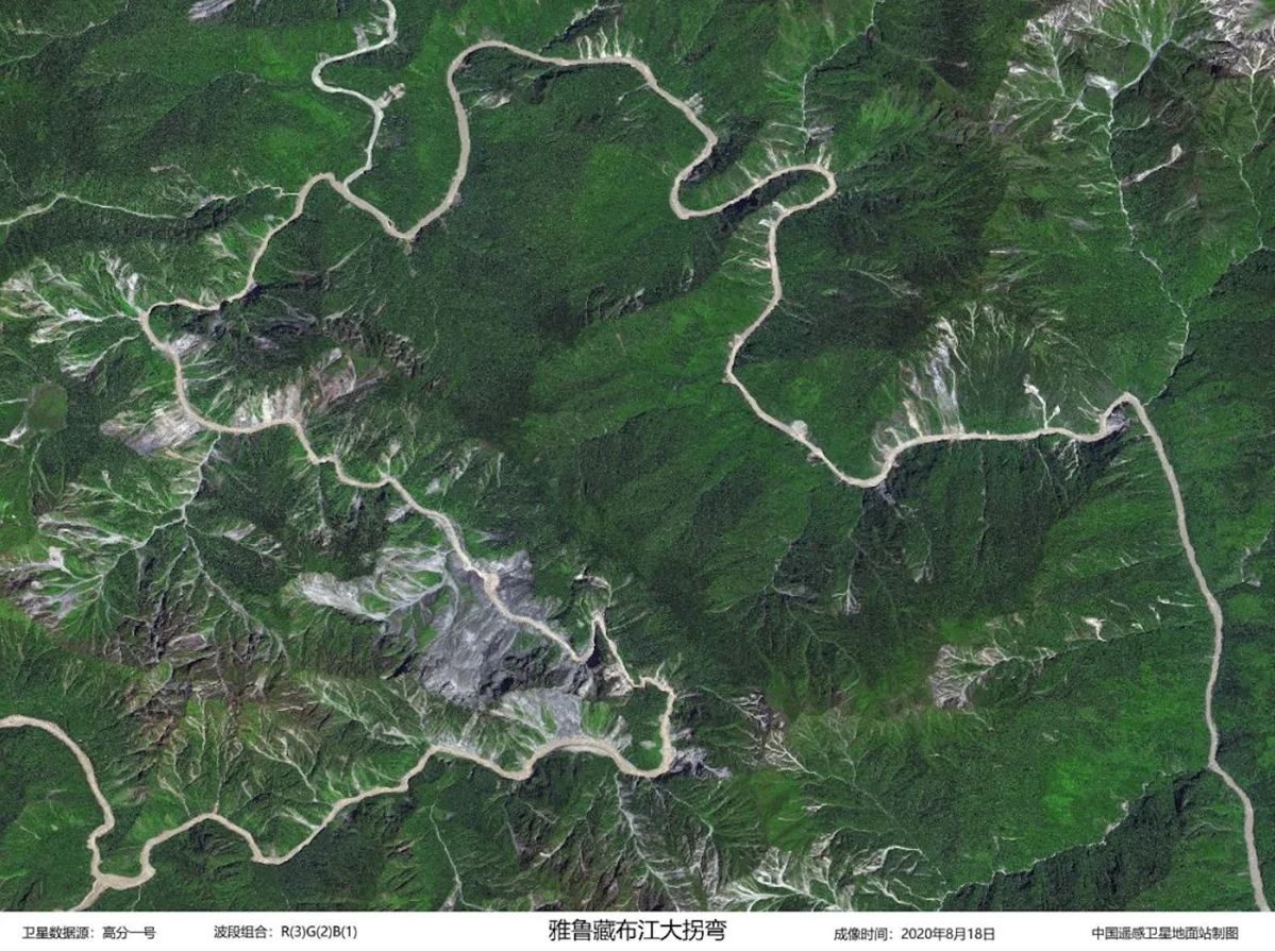Image acquired by GF-1 on August 18, 2020 shows the Great Canyon region of the Yalu Tsangpo River in the Tibet Autonomous Region, China. (Credit: AIR)