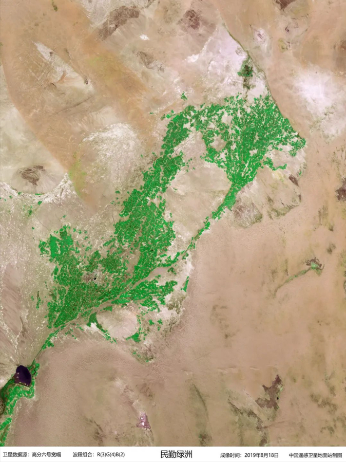 Minqin Oasis in northwest China's Gansu Province, image captured by GF-6 on August 18, 2019. (Credit: AIR)