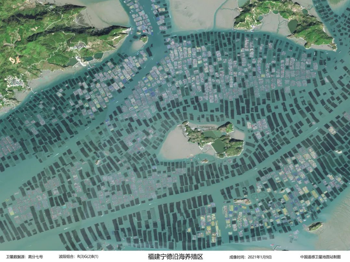 Coastal aquaculture zone in Ningde, southeast China's Fujian Province. The image is captured by GF-7 on January 9, 2021. (Image by AIR)