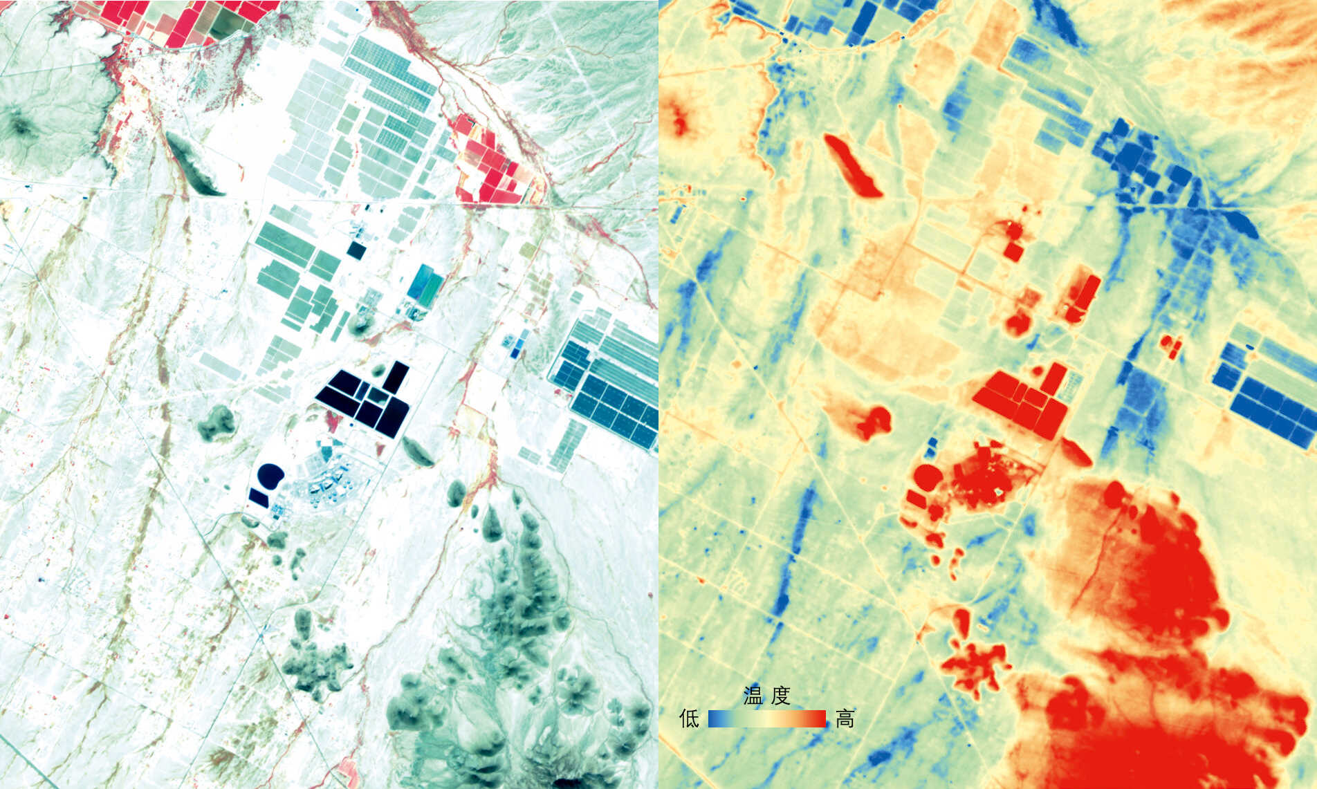 Nuclear Power Plant in Arizona, USA. (Left Image: False-Color Multispectral Image; Imaging Date: 2023-11-04 Daytime; Right Image: Single-Band Thermal Infrared Image; Imaging Date: 2023-10-27 Nighttime; Image by AIR)