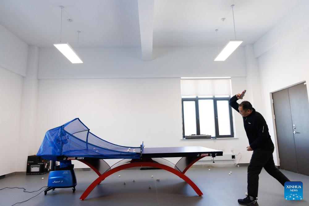 Shi Shengpu, director of the Mohe Station of the China Remote Sensing Satellite Ground Station, practises table tennis in an activity room at the station in Mohe, northeast China's Heilongjiang Province, on Jan. 25, 2026. (Xinhua/Jin Liwang)