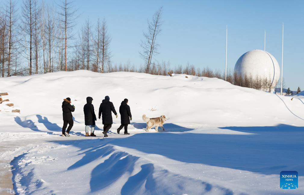 Staff members return to the office building after maintaining the satellite data receiving system at the Mohe Station of the China Remote Sensing Satellite Ground Station in Mohe, northeast China's Heilongjiang Province, on Jan. 25, 2026. (Xinhua/Jin Liwang)