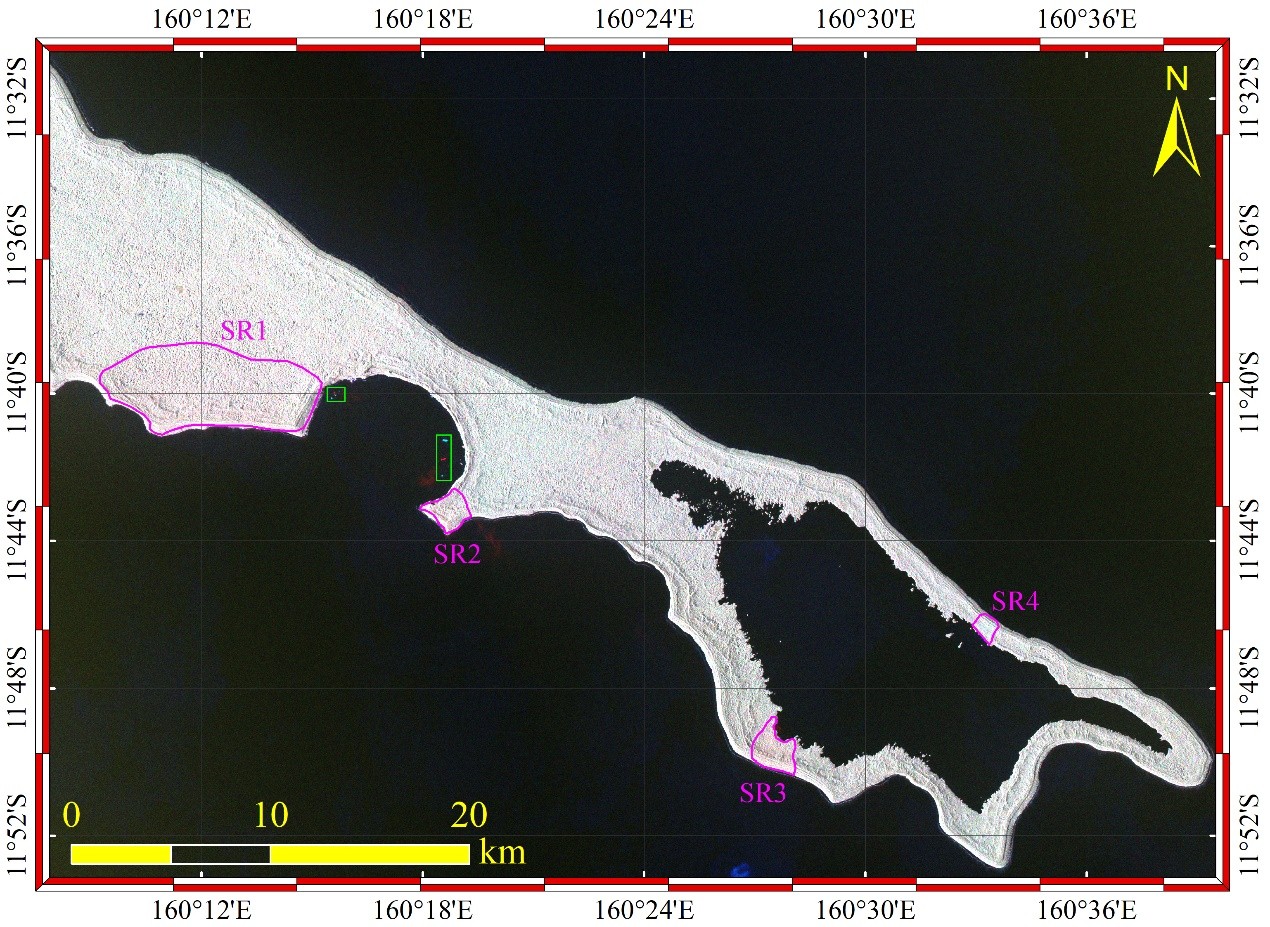 HIST research teams led by Prof. WANG Xinyuan and Prof. CHEN Fulong applied the ESA Sentinel-1 satellite radar imagery captured on 27 March 2020 (pre-disaster) and 8 April 2020 (post-disaster), and spotted four suspected regions based on Image Differencing Change Detection. As marked out in pink polygons (SR1 to SR4) in Figure 2, those regions featuring logging, steep areas and sparsely vegetated in the Rennell Island, according to the research, merit special attention. The initial finding is that the impact of Tropical Cyclone Harold on East Rennell is limited based on the scope and the change of affected areas. The assessment report has been delivered to UNESCO WHC.