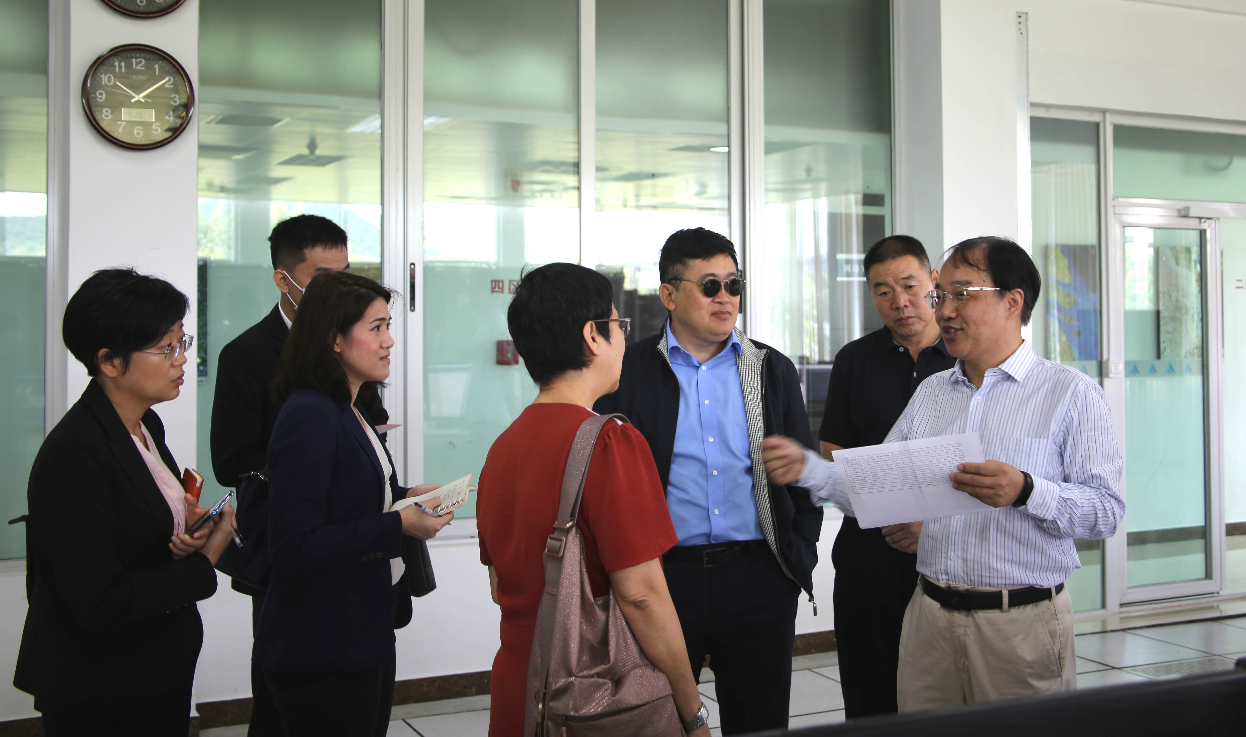 The delegation was received by Prof. LIU Jianbo from AIR who introduced Sanya Station under the China Remote Sensing Satellite Ground Station (RSGS), a big science research facility housed by AIR, its satellite data receiving system, and the virtual ground station system developed by AIR scientists to promote overseas data application based on RSGS.