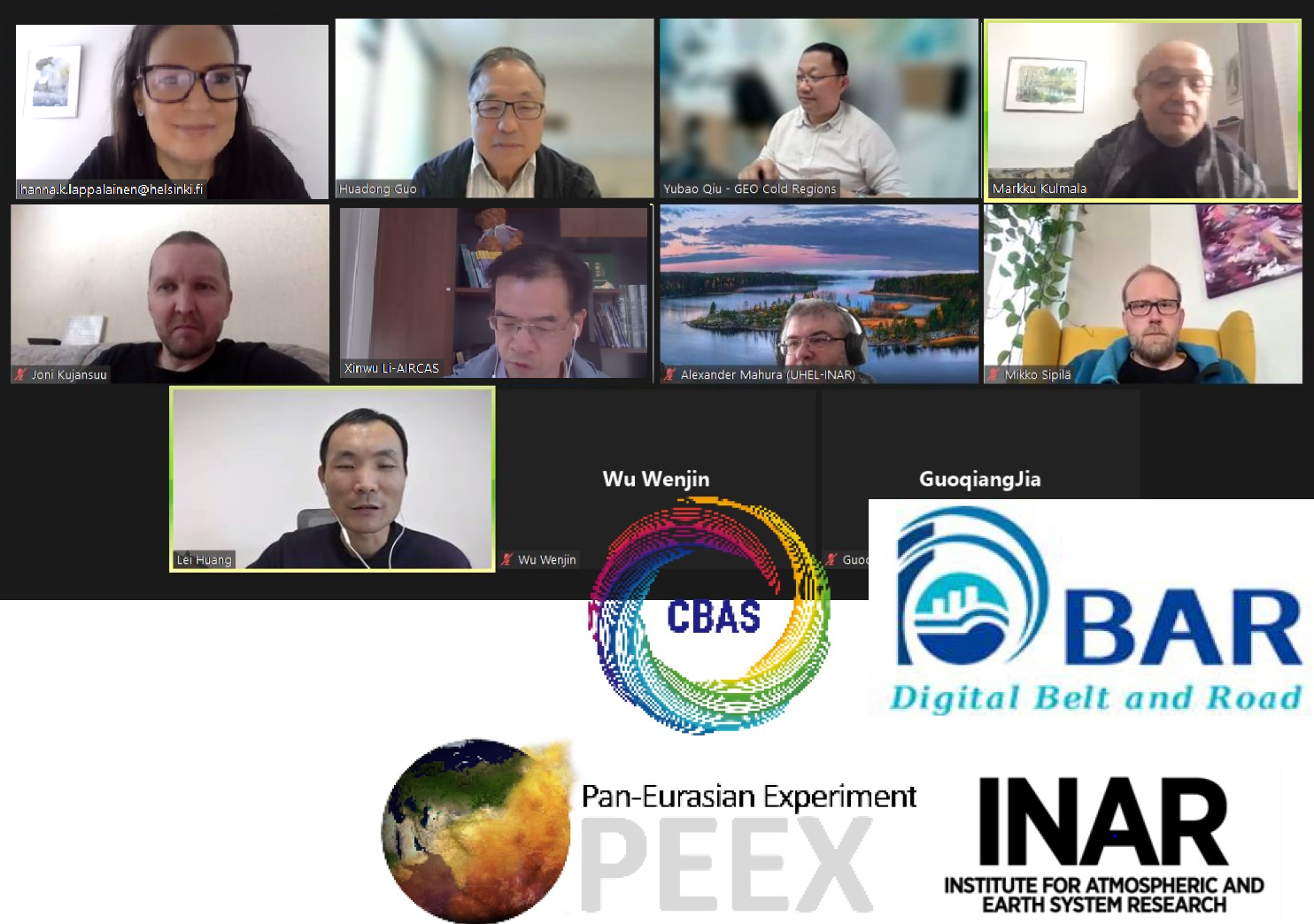 Digital Belt and Road Program (DBAR) and Pan-Eurasian Experiment Program (PEEX) held an online meeting on “Coordinated, comprehensive, long-term in situ component of land-atmosphere measurements for complementing the space borne Earth observation” on March 31. Colleagues from DBAR under International Research Center of Big Data for Sustainable Development Goals (CBAS) and the Institute for Atmospheric and Earth System Research (INAR) and PEEX at the University of Helsinki attended the meeting.