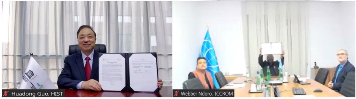 The MOU was signed by Prof. GUO Huadong, Director of HIST, and Dr. Webber Ndoro, Director General of ICCROM through an online ceremony.