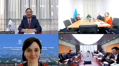 On 24 October 2022, an Memorandum of Understanding (MOU) was signed between the International Centre on Space Technologies for Natural and Cultural Heritage (HIST) under the auspices of UNESCO and the International Centre for the Study of the Preservation and Restoration of Cultural Heritage (ICCROM) to advance collaboration on applying space technologies to monitor, conserve and protect World Cultural Heritage sites.