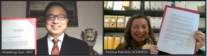 On 21 November 2022, Prof. Huadong Guo, Director of the International Centre on Space Technologies for Natural and Cultural Heritage (HIST) under the auspices of UNESCO, and Dr. Teresa Patricio, President of the International Council on Monuments and Sites (ICOMOS), signed a Memorandum of Understanding (MoU) online to shape a long-term strategic partnership for the protection and preservation of World Cultural Heritage sites internationally.