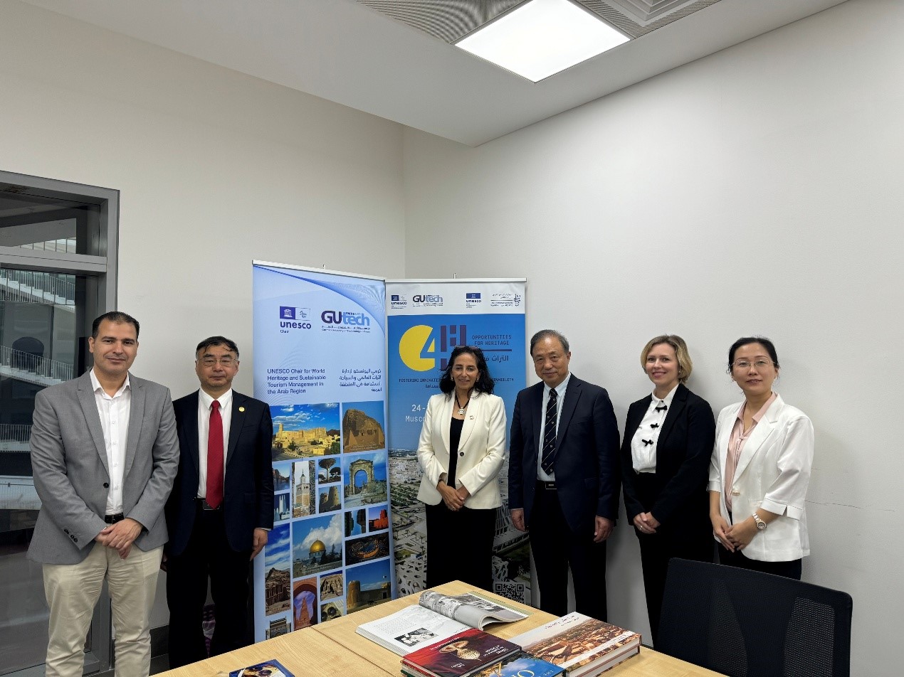 The delegation also visited the German University of Technology in Oman (GUtech), engaging in a symposium with faculty from the College of Earth Sciences and the College of Computer Science. Discussions centered around capacity building and data sharing for the SDGs through space observation and Digital Earth technologies. Additionally, participants explored issues related to cultural heritage protection.