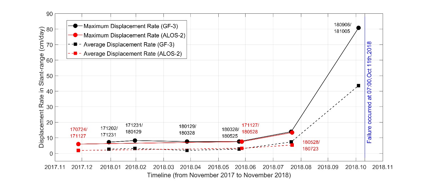 The method is also used to study the evolution of the 2018 Jinsha River landslide (Tibet, China) using SAR data from the Gaofen 3 (GF-3) satellite and the Advanced Land Observing Satellite-2 (ALOS-2) satellite.