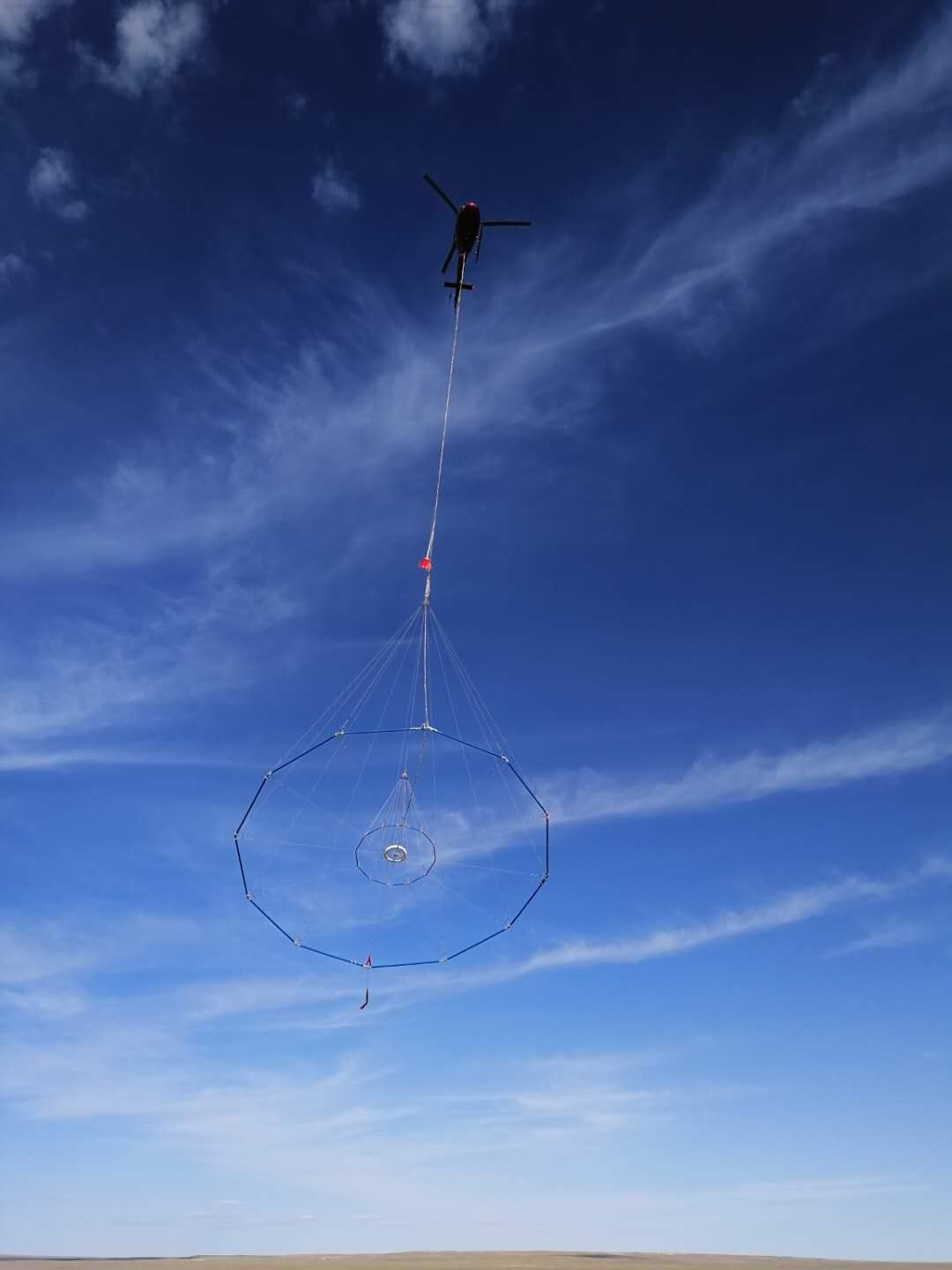Airborne transient electromagnetic detection system based on a helicopter platform.