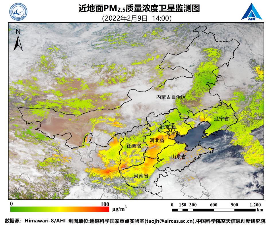 Satellite observation of fine particulate matter in Beijing-Tianjin-Hebei and surrounding areas. (Himawari-8 on Feb.9, 2022) (Image by AIR)
