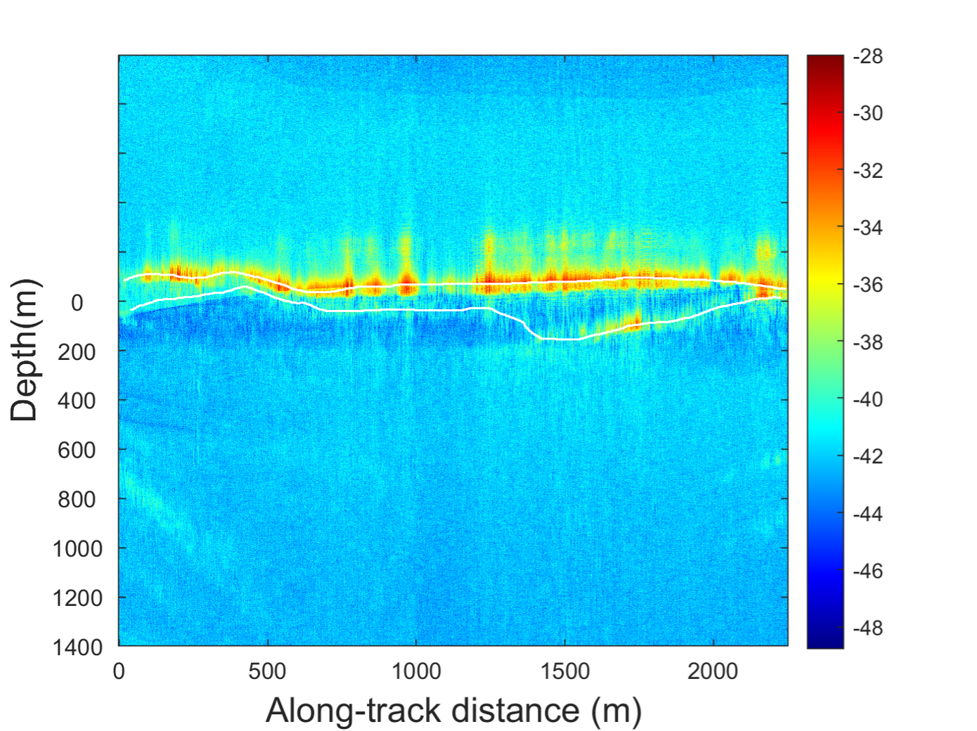 Preliminary interpretation of glacier-bedrock interface based on VHF-band airborne radar data. (Image by AIR)