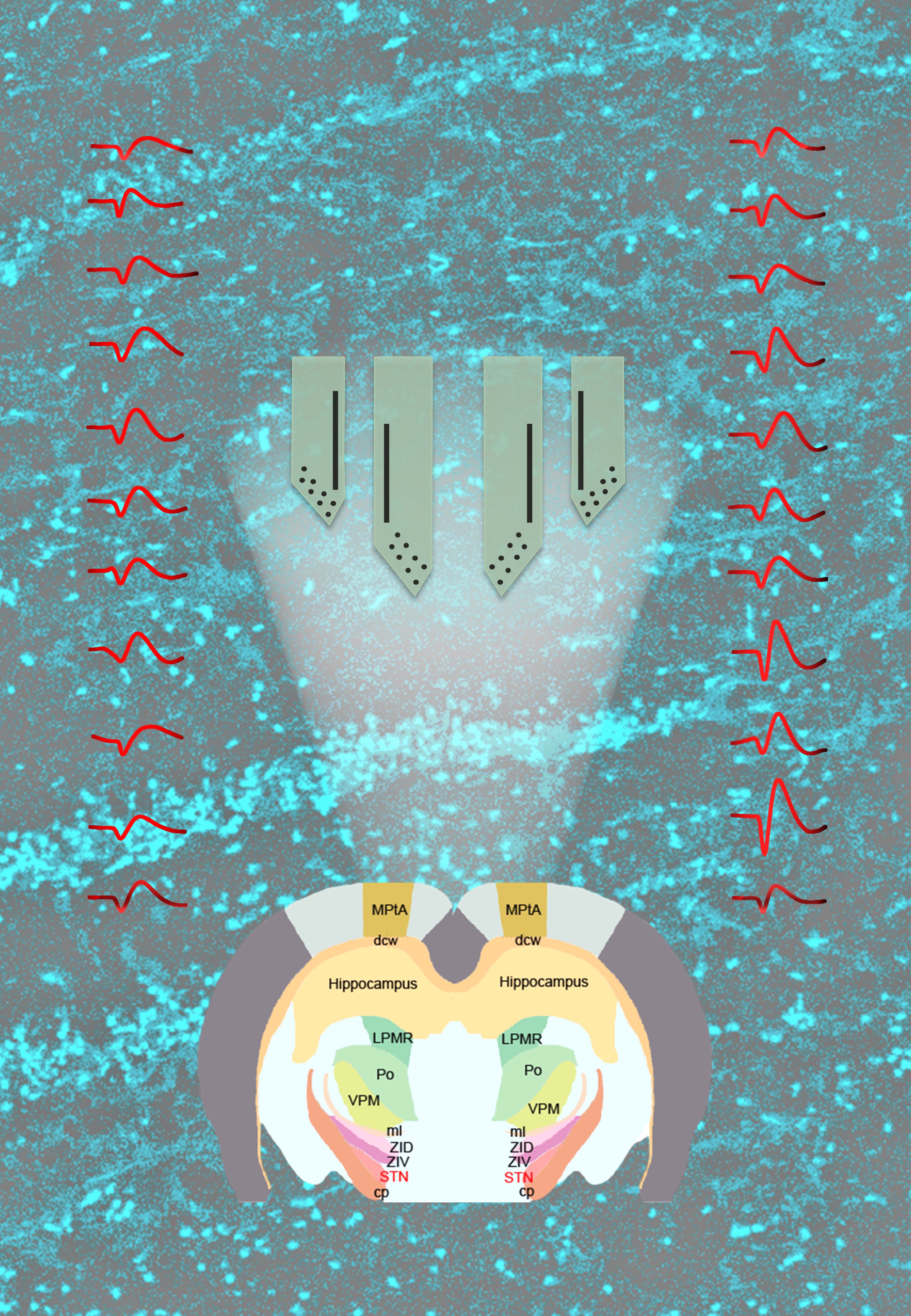 Compared with the healthy hemisphere, the STN on the damaged side showed elevated rates of action potential discharge, increased action potential amplitudes and heightened power in local field potential, accompanied by violent oscillations within the β frequency band. The pattern recognition of these distinct signals enables real-time, precise functional localization of the STN at the cellular level.