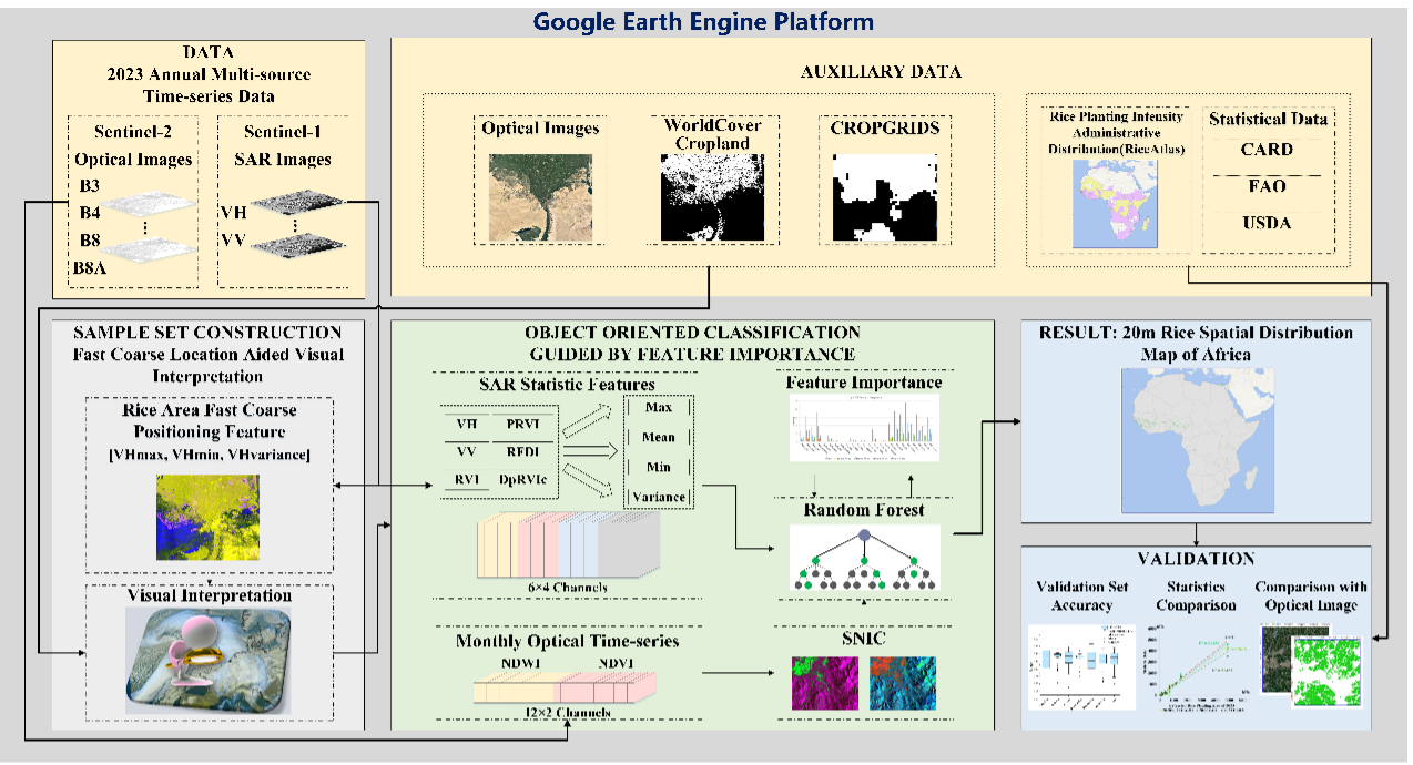This study, titled "The 20m Africa rice distribution map of 2023", demonstrates an average classification accuracy exceeding 85% and a linear correlation (R²) above 0.9 with national statistics. The dataset is now openly accessible to the global research community, and is expected to play a key role in supporting the monitoring and evaluation of the United Nations Sustainable Development Goal 2 (SDG2) on zero hunger.