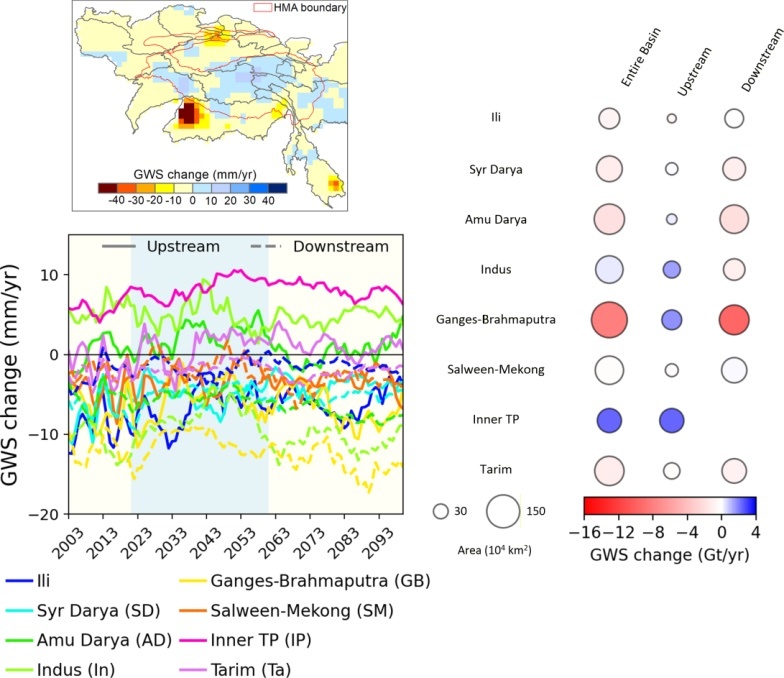 Groundwater storage changes and projected future trends in major basins across High Mountain Asia. (Image by AIRCAS)